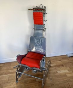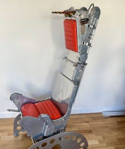 Martin Baker ejection seats were at the forefront of aviation design and build, they were hand made and are a true engineering masterpiece that would be a stand out item in any designer home or office space. This seat has been finished in Chrome and has leather upholstery added, it has all of its original warning signs and looks stunning.